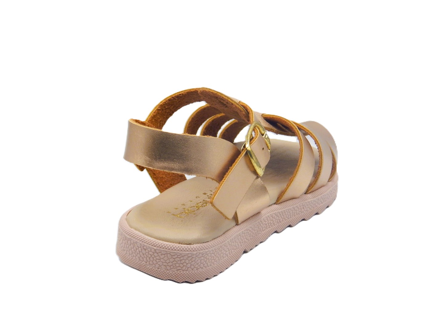 Παιδικά πέδιλα για κορίτσι σε ροζ -bronze χρώμα της συλλογής Άνοιξη – Καλοκαίρι 2026. Άνετα και πρακτικά, είναι ιδανικά για καθημερινή χρήση και για βόλτες.