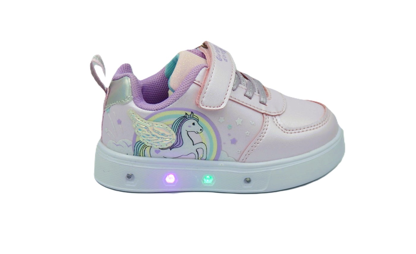 Παιδικά sneakers για κορίτσια προσφέρουν άνεση και στυλ της συλλογής Άνοιξη – Καλοκαίρι 2026 . Έχουν άνετη εφαρμογή, ελαφριά σόλα με φωτάκια και αυτοκόλλητο velcro με ελαστικό κορδόνι για άψογη εφαρμογή. Κατασκευασμένα από ανθεκτικά υλικά είναι κατάλληλα για καθημερινή χρήση και για το σχολείο.