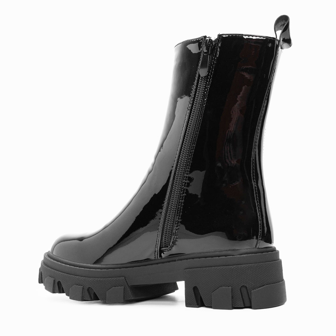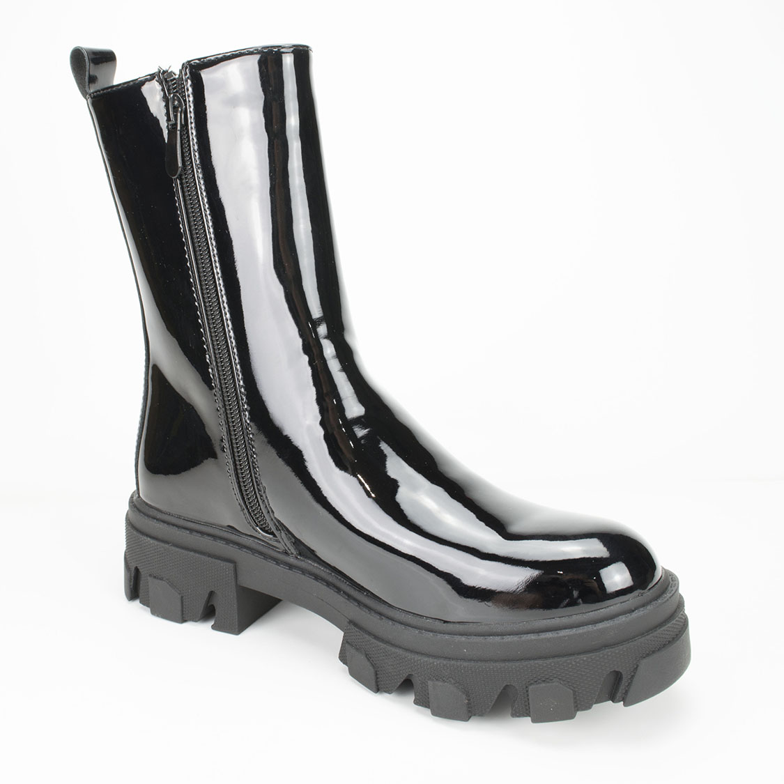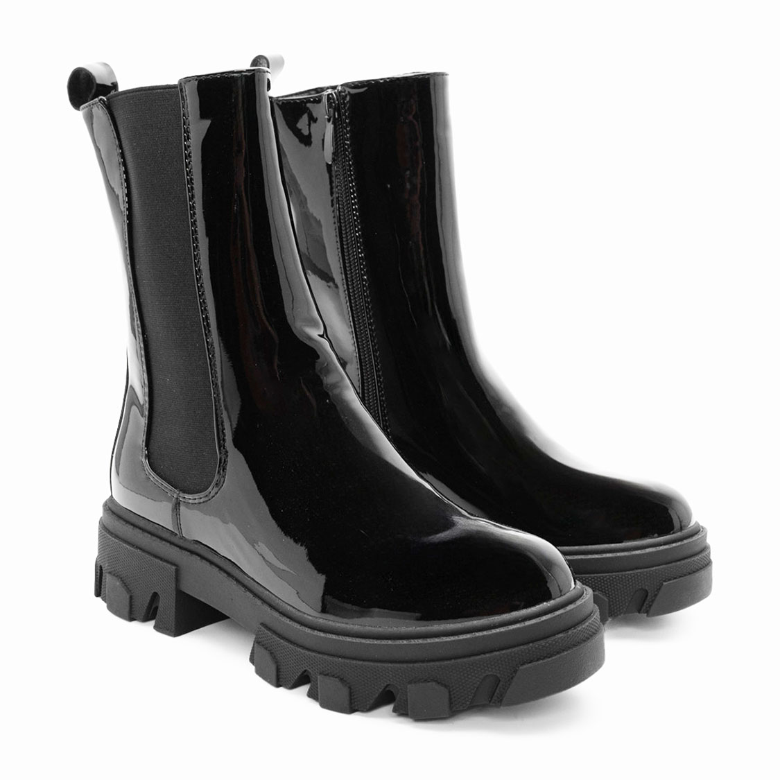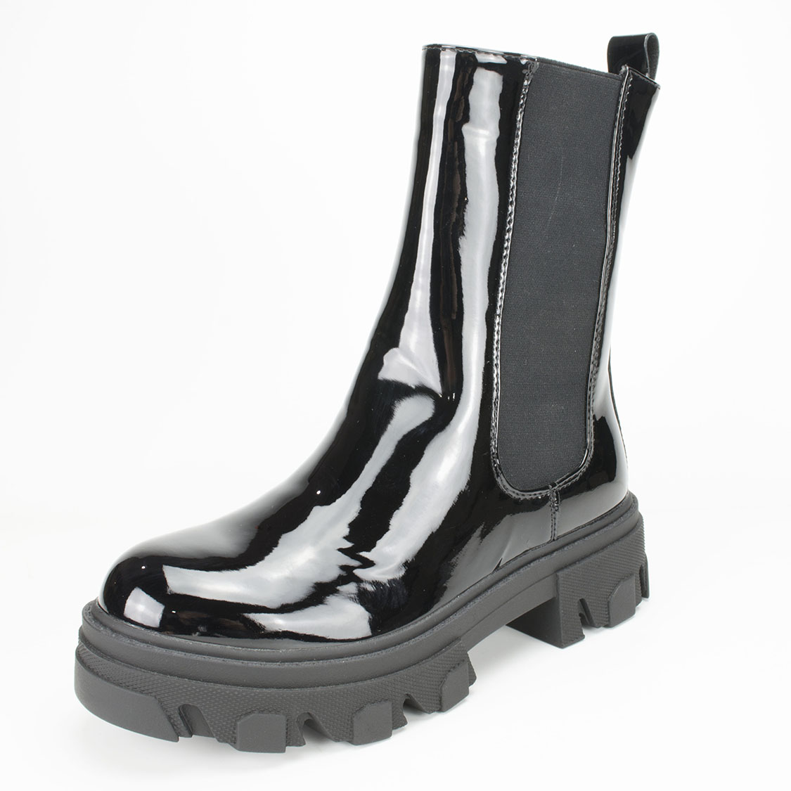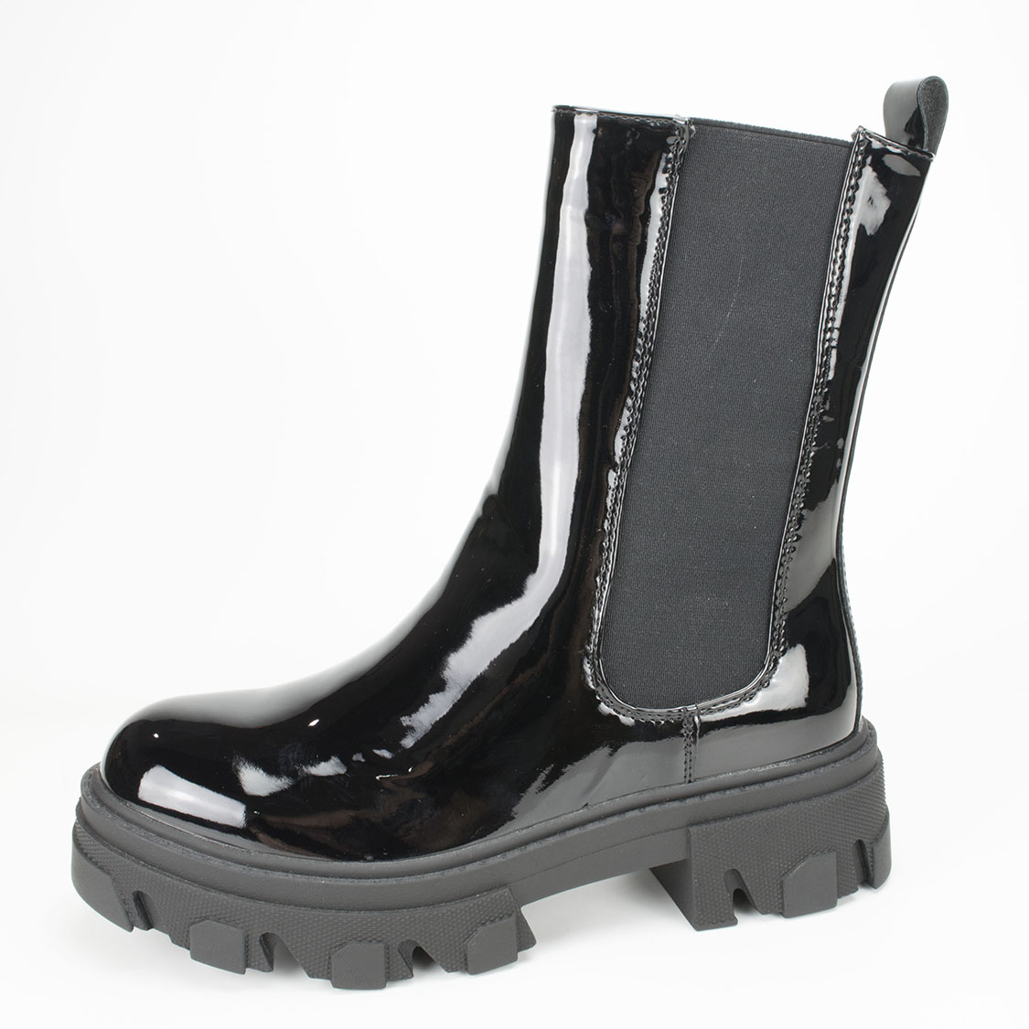 Μαύρα Λουστρίν Μποτάκια με Λάστιχο & Τρακτερωτή Σόλα