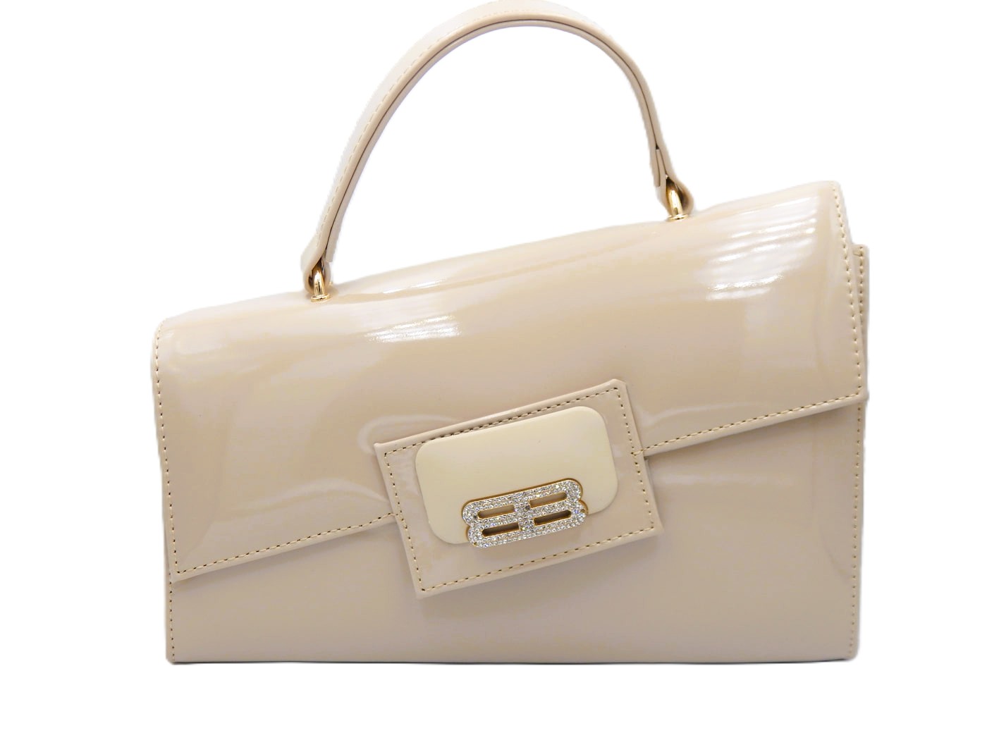 Γυναικεία τσάντα χειρός και χιαστί της συλλογής Άνοιξη – Καλοκαίρι 2026 σε μπεζ λουστρίνι σε ένα υπέροχο και chic μοτίβο. Σχεδιασμένη για να συνδυάζει πρακτικότητα και μοντέρνα αισθητική. Συνδυάστε την με την αντίστοιχη γόβα της και κλέψτε τις εντυπώσεις. Διαθέτει χρυσή αλυσίδα. Διαστάσεις : Μήκος 23εκ – Ύψος 16εκ – Πλάτος 7εκ