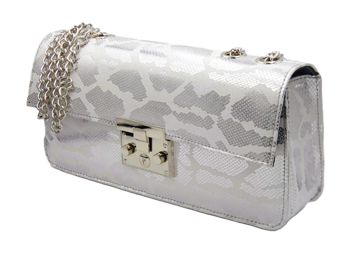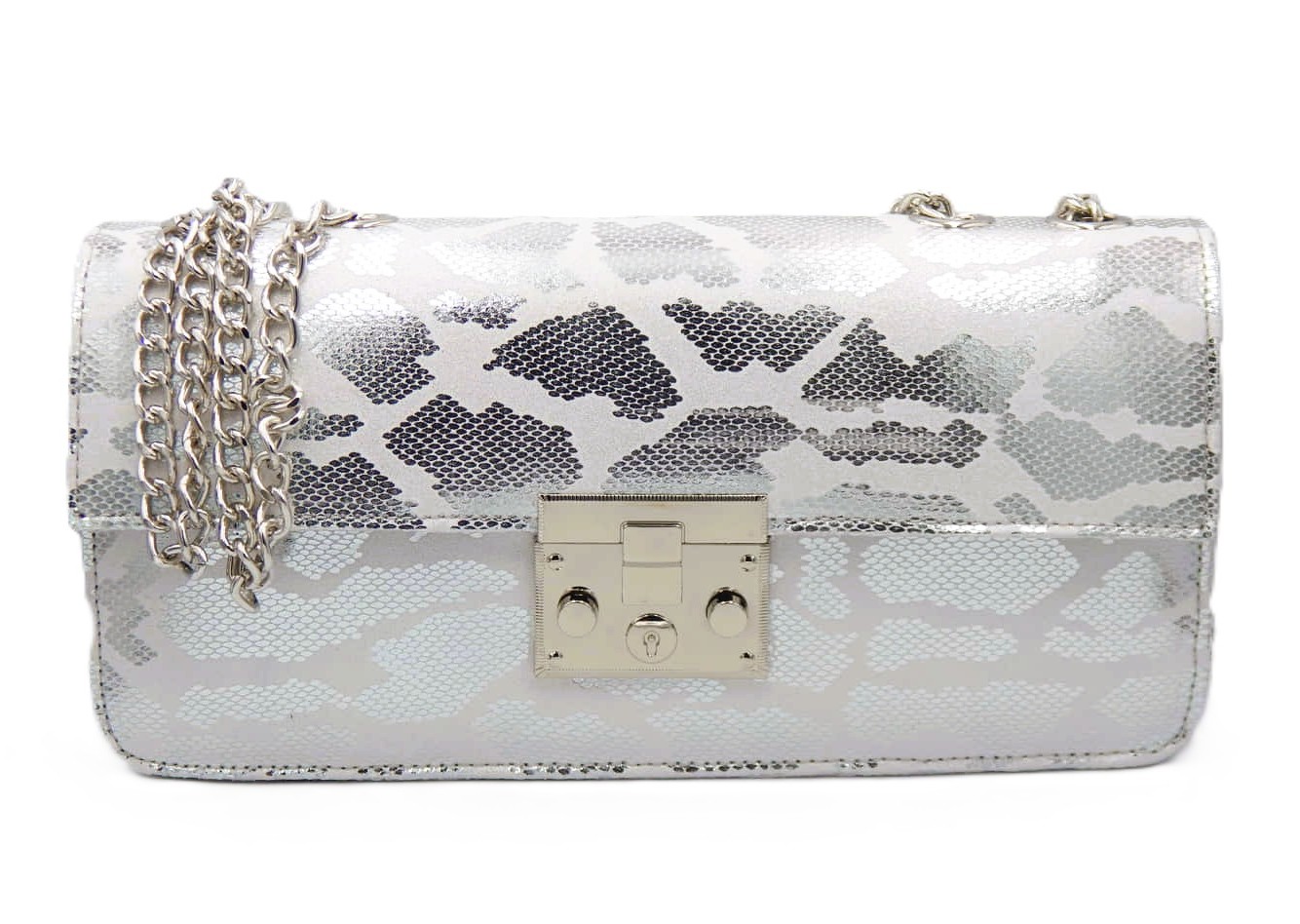 Γυναικεία τσάντα ώμου και χιαστί της συλλογής Άνοιξη – Καλοκαίρι 2026 σε ασημί χρώμα. Σχεδιασμένη για να συνδυάζει πρακτικότητα και μοντέρνα αισθητική. Συνδυάστε την με την αντίστοιχη γόβα της και κλέψτε τις εντυπώσεις. Διαθέτει ασημί αλυσίδα. Διαστάσεις : Μήκος 24εκ – Ύψος 15εκ – Πλάτος 6εκ