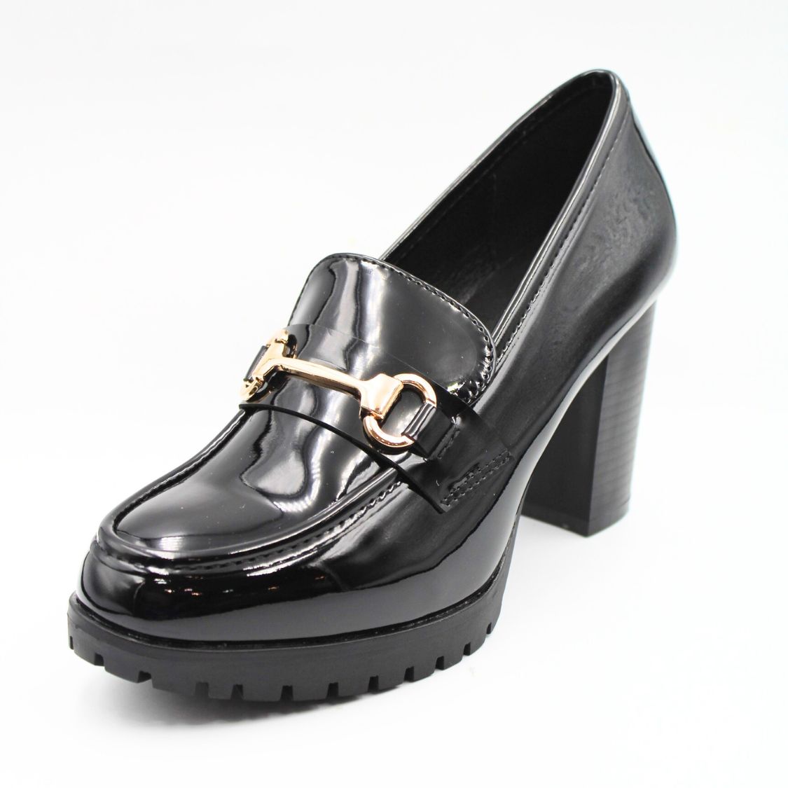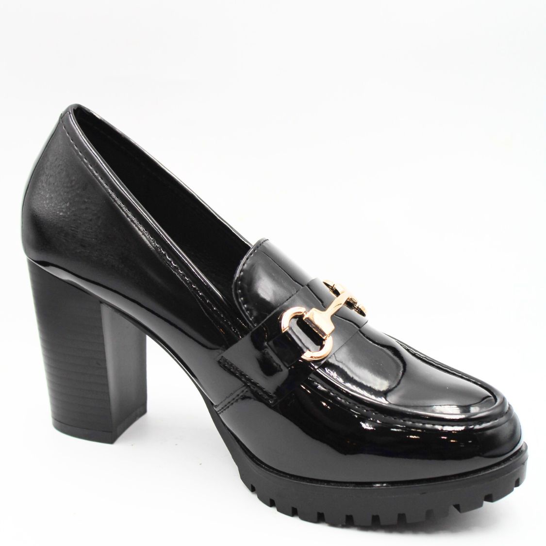 Loafers γόβες με χοντρό τακούνι Μαύρο λουστρίν