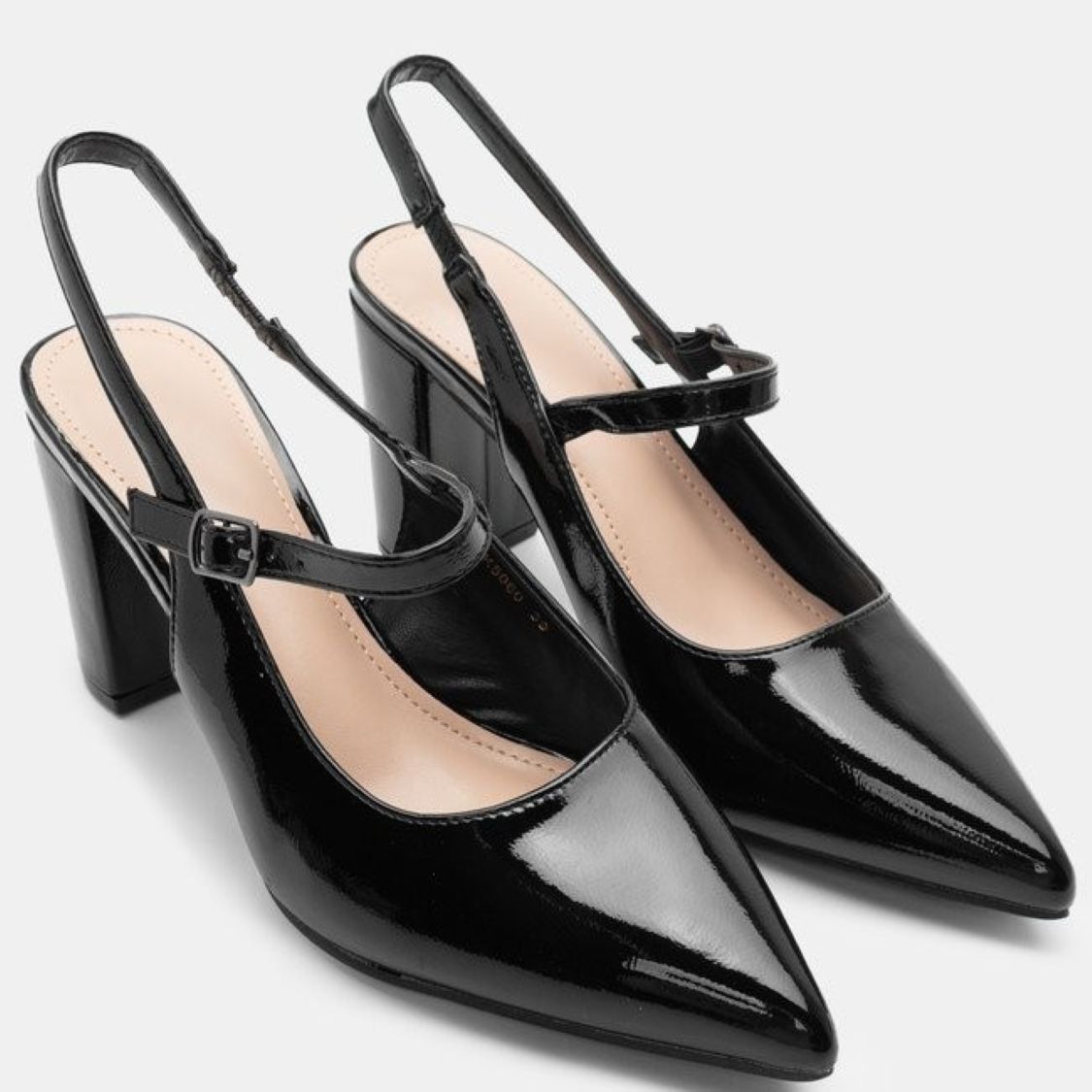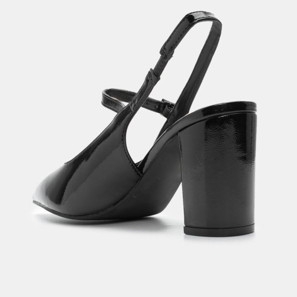 Απογειώστε το look σας με αυτό το κλασικό μαύρο slingback σε γυαλιστερή υφή. Διαθέτει μυτερή μύτη που προσδίδει θηλυκότητα, καθώς και σταθερό, τετράγωνο τακούνι για άνεση όλη μέρα. Το ρυθμιζόμενο λουράκι αγκαλιάζει απαλά το πέλμα, ενώ η κομψή σιλουέτα του ταιριάζει ιδανικά με επίσημα σύνολα, αλλά και με πιο casual επιλογές. Ένα παπούτσι-κλειδί για να ολοκληρώσετε κάθε σικ εμφάνιση με αβίαστη φινέτσα!