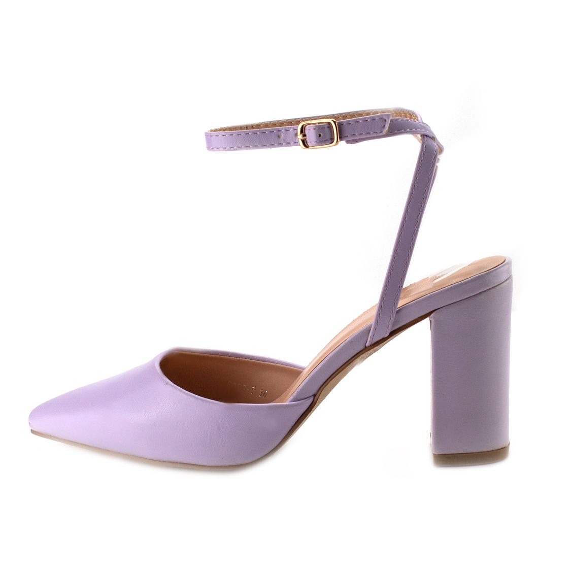 Γόβες Μυτερές Open Heel με Μπαρέτα Μωβ