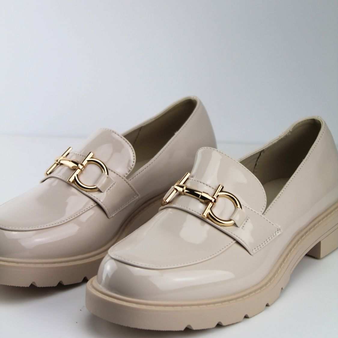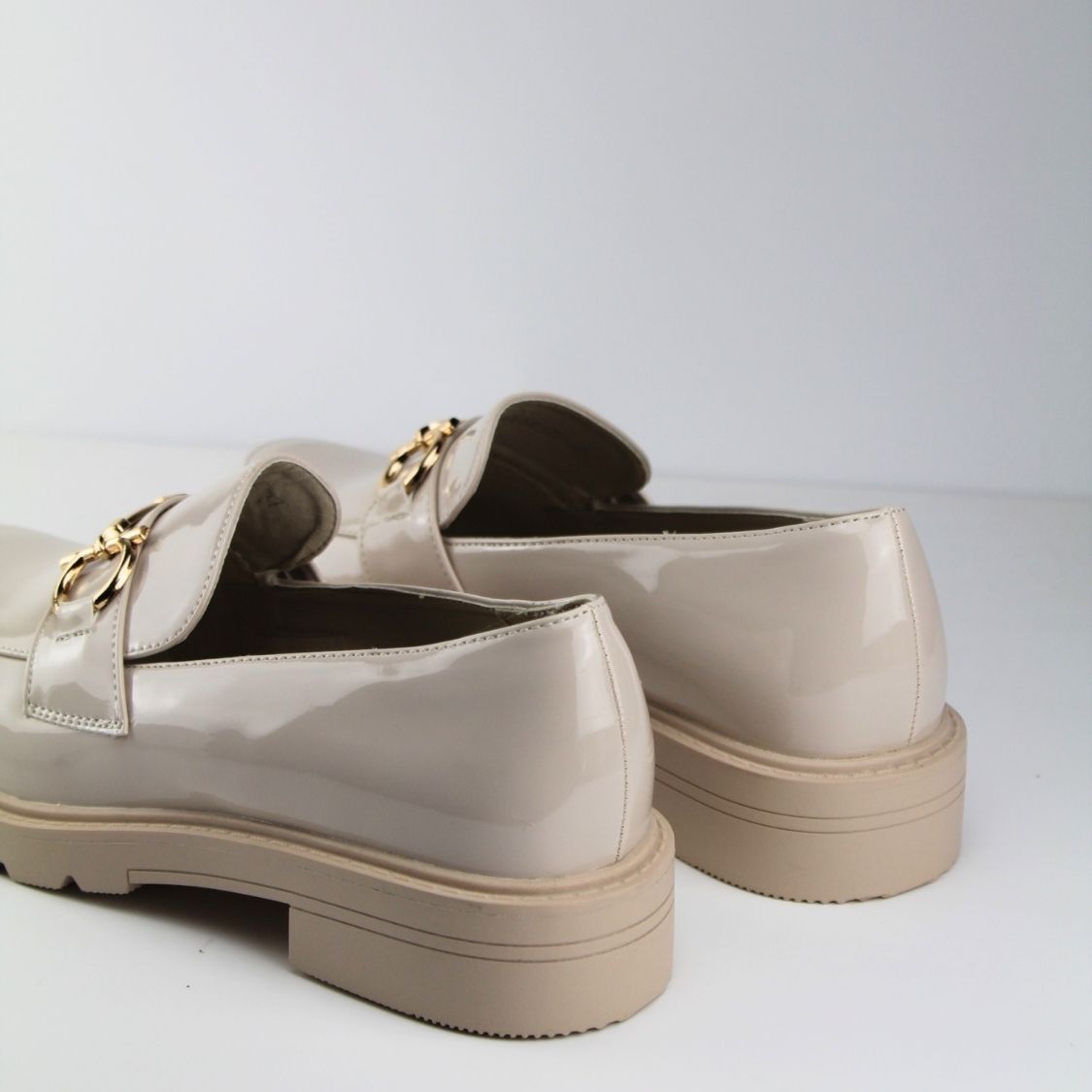 Loafers chunky με διακοσμητική αγκράφα. Έχουν μεταλλικό διακοσμητικό σε χρυσό χρώμα. Chunky Τρακτερωτή σόλα.