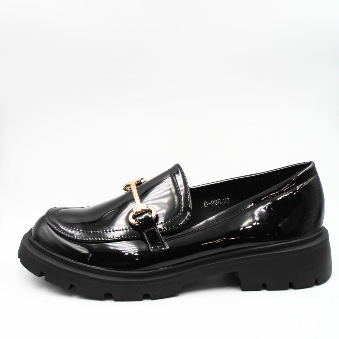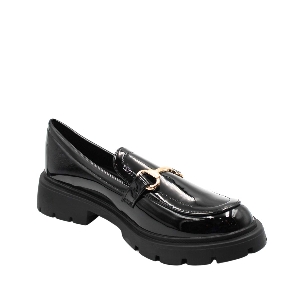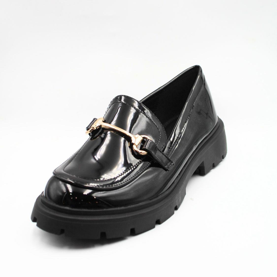 Loafers με μεταλική χρυσή αγκράφα λουστρίν