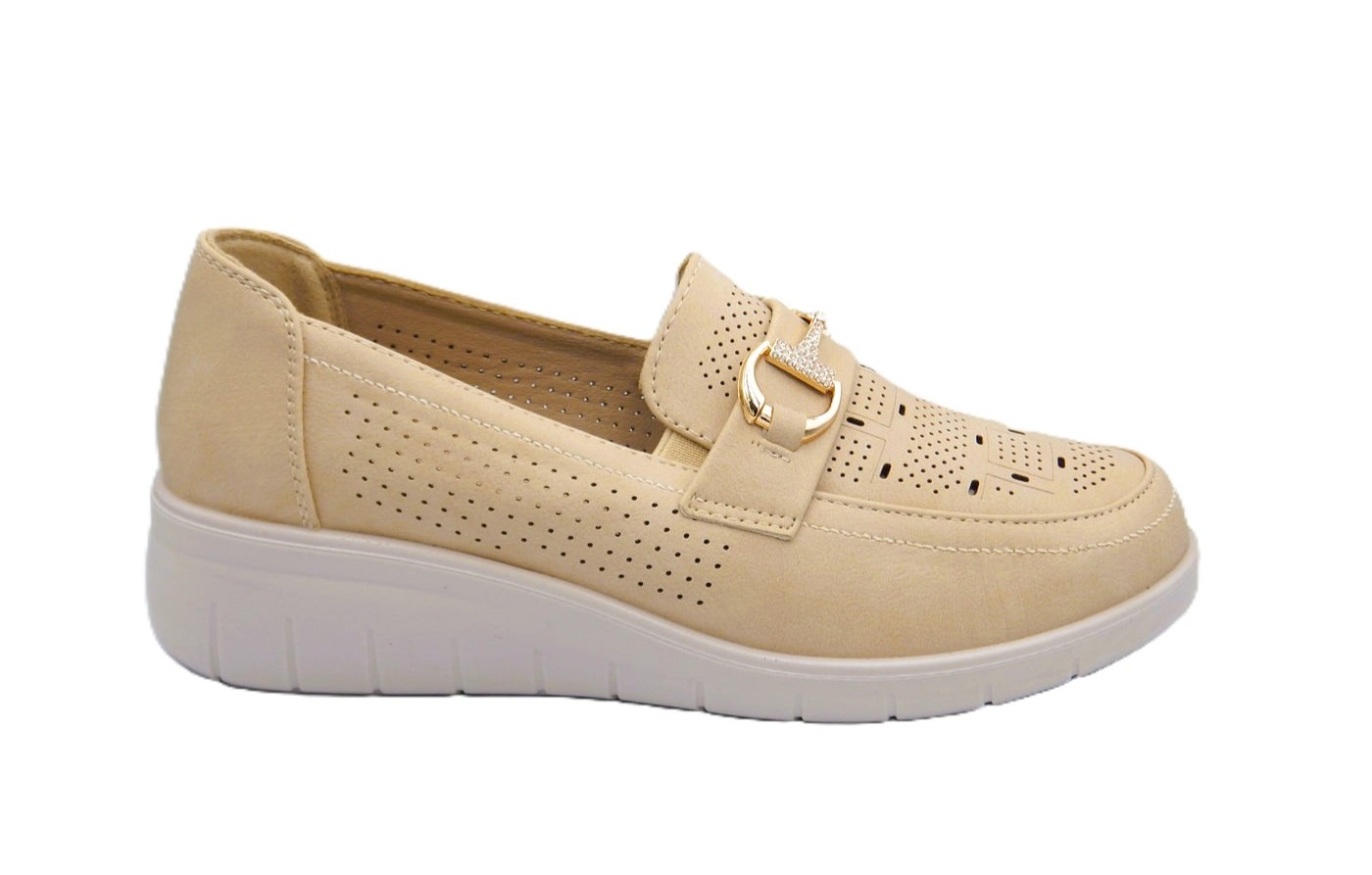 Γυναικεία ανατομικά μοκασίνια της συλλογής Άνοιξη -Καλοκαίρι 2026 σε μπεζ χρώμα. Είναι διάτρητα , ιδανικά για πολύωρη χρήση χάρη στο πολύ μαλακό πάτημα του και την αντιολισθητική του σόλα. Χαρίζει άνεση και στυλ όλες τις ώρες τις ημέρας. Ύψος σόλας 4εκ