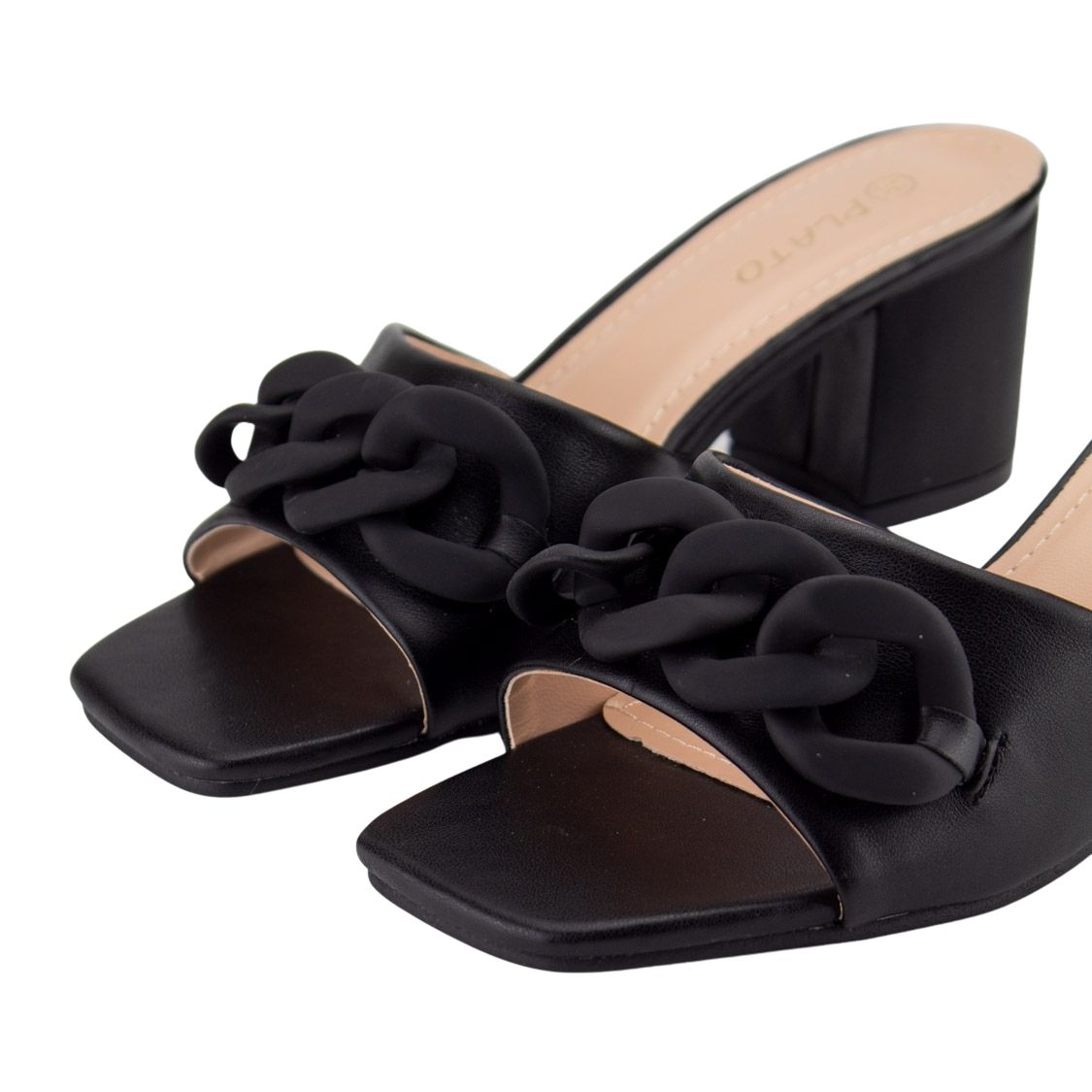 Mules Με Τετράγωνο Τακούνι & Αλυσίδα Μαύρο. Ανακαλύψτε τα αγαπημένα σας γυναικεία πέδιλα mules με τακούνι σε μεγάλη ποικιλία χρωμάτων και σχεδίων. Κάντε εύκολα την παραγγελία σας online!