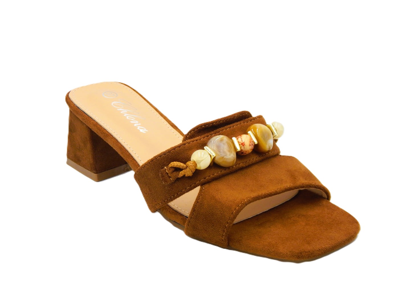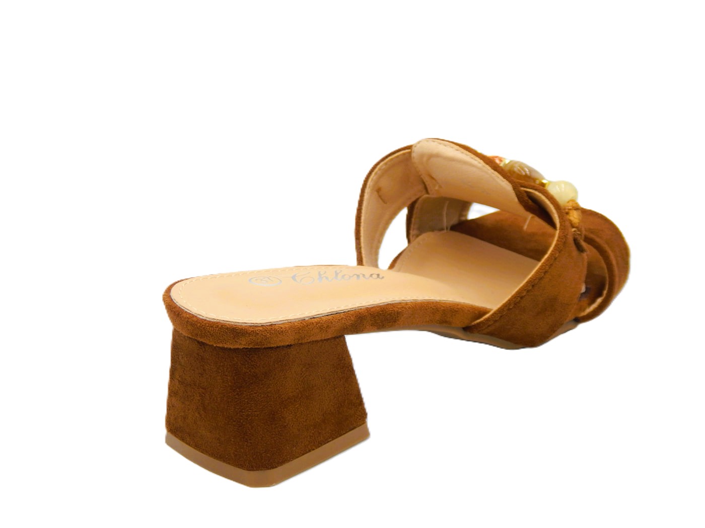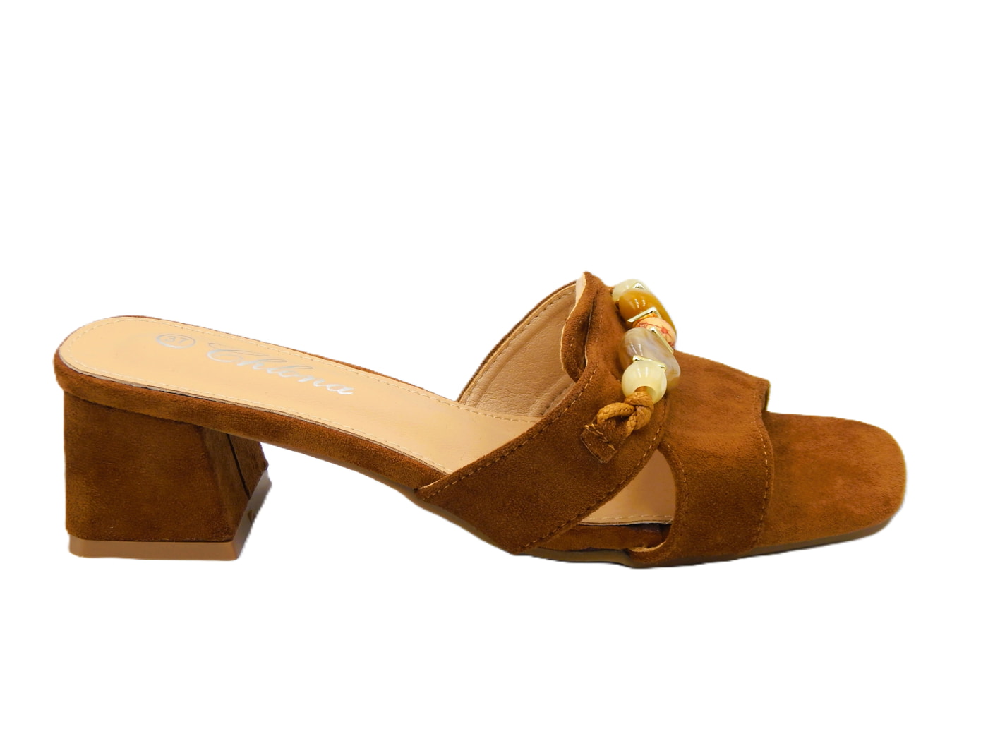 Γυναικεία πέδιλα mule της συλλογής Άνοιξη -Καλοκαίρι 2026 σε ταμπά χρώμα με χαμηλό τετράγωνο τακούνι 5,5εκατοστών. Σταθερά και ευκολοφόρετα, αγκαλιάζουν το πόδι με στιλ και σε συνοδεύουν από το πρωί μέχρι το βράδυ.