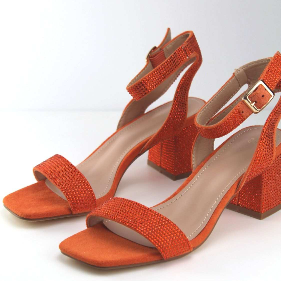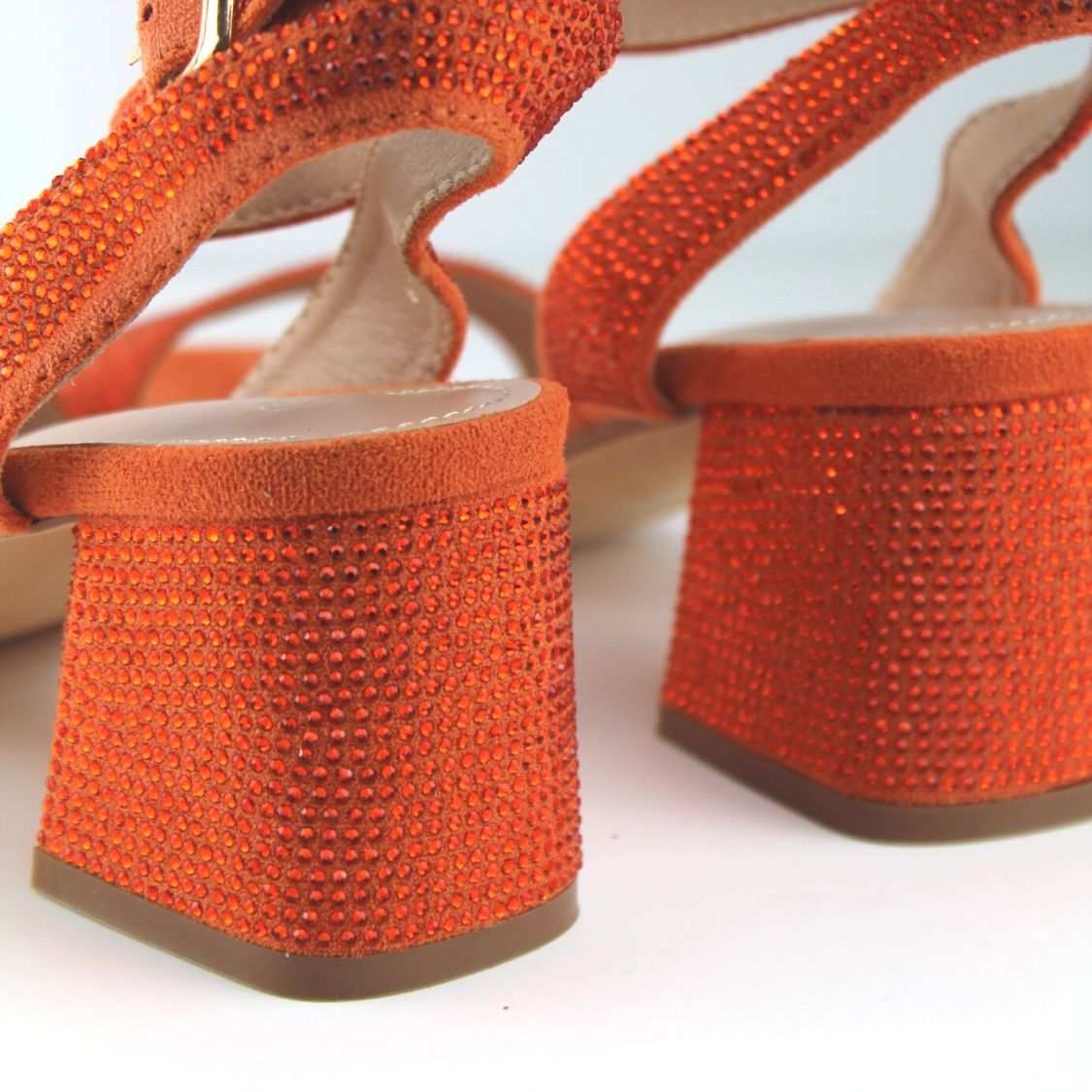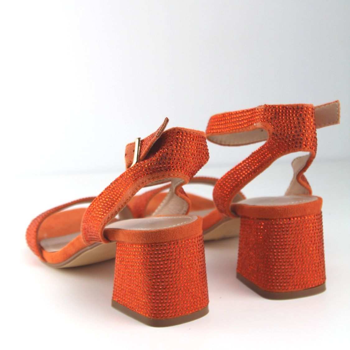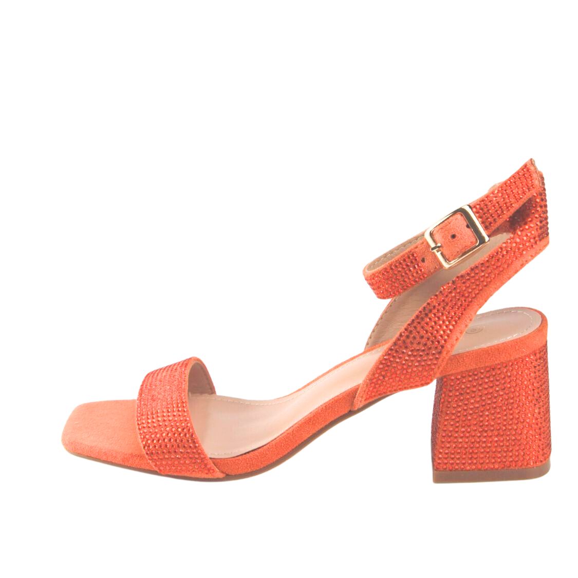 Γυναικεία Πέδιλα με Στρας και Χοντρό Χαμηλό Τακούνι πορτοκαλί για τις πιο λαμπερές εμφανίσεις σου και με το πιο ανετά πάτημα! Μπες τώρα στο bngshoes.gr!