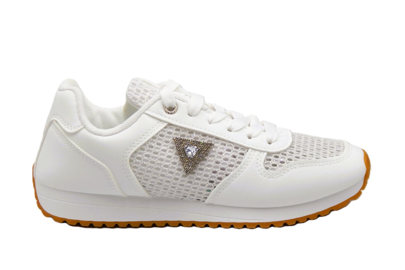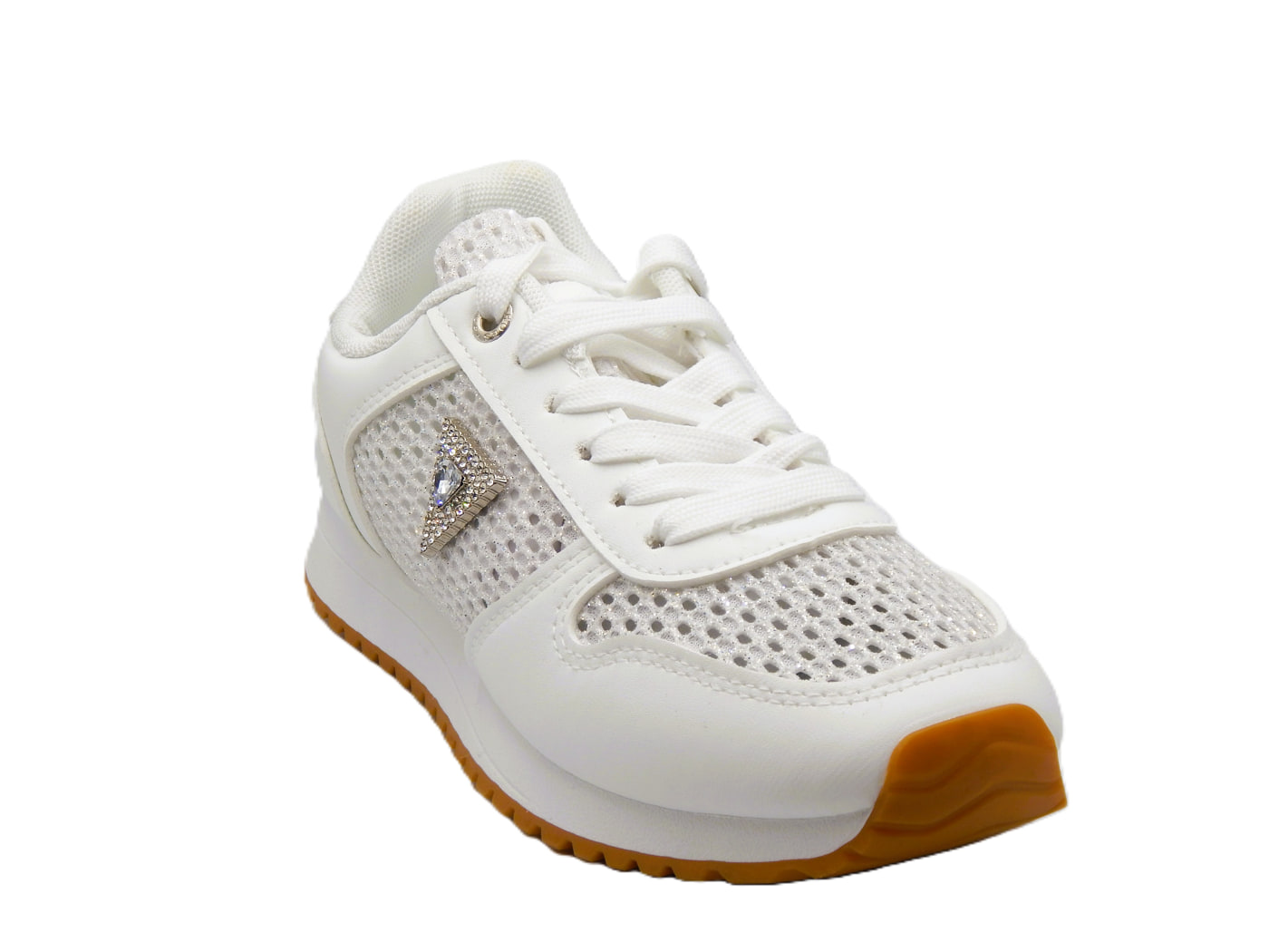 Γυναικεία sneakers της συλλογής Άνοιξη -Καλοκαίρι 2026. Σε ασημί με λευκό αποχρώσεις με διάτρητο ύφασμα διακοσμημένο με strass στο πλαι. Το must have sneaker της φετινής σεζόν που πρέπει σίγουρα να αποκτήσεις. Ύψος σόλας 2εκ